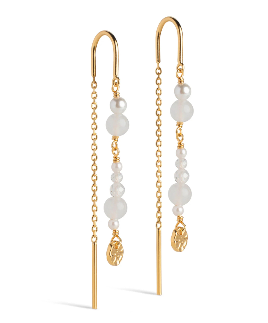 About the jewelry: Our Sofia chain earrings are full and lively when they are put on the ear. They consist of stones and pearls, giving them an edge and feminine charm. You can create all kinds of looks with these earrings, depending on whether you combine them with a pair of thin hoops, baroque pearls, or some cute ear studs. Sofia white and pearl is for those of you who can't get enough of the delicate, soft colors, but who want a casual and natural look. The calm colors on the earring make it easy to pair with other earrings.