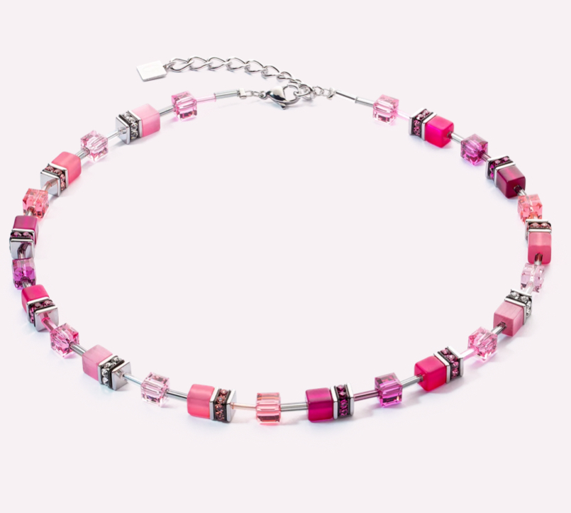 Viva Magenta! We’re paying homage to this year’s fashionable colour with a range whose name says it all. Sophisticated Swarovski® crystals and vibrant GeoCUBES® come together in a distinctive colourway, transforming this short necklace into the season’s must-have accessory. Pure joie de vivre – viva magenta! The stainless steel clasp allows the length to be adjusted by 6 cm. Complement this style with the Viva Magenta bracelet and earrings.