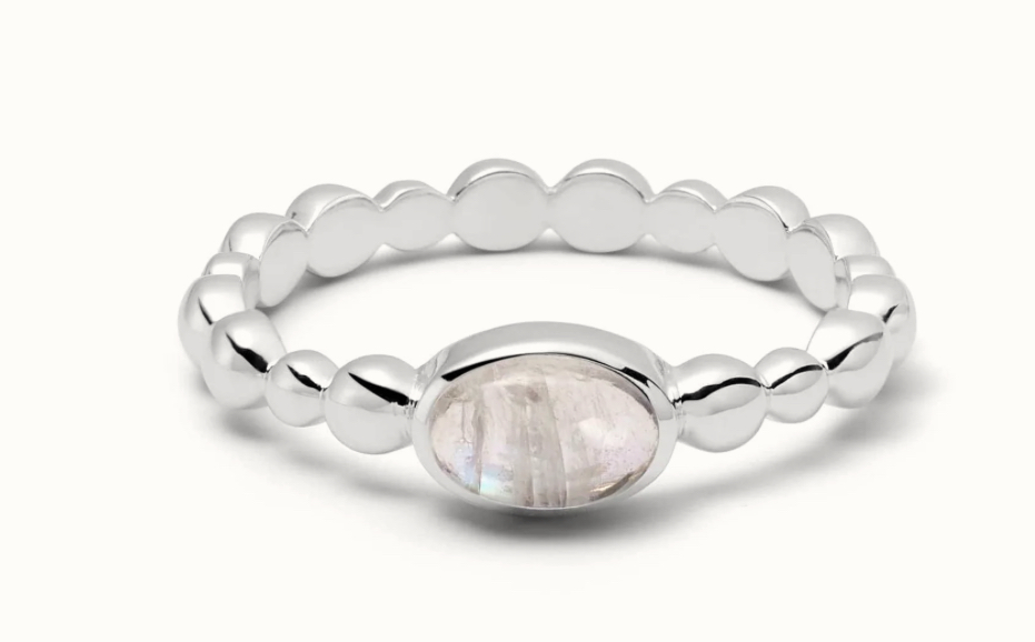 Picture of Rainbow Moonstone healing bobble ring in silver