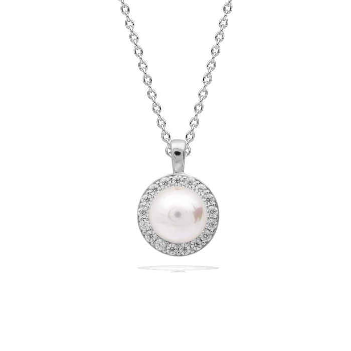 Shell Pearl and Zirconia Halo Pendant Silver
