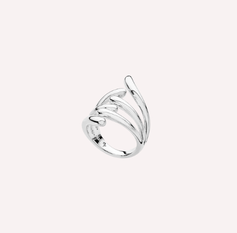This bold Drop Silver Ring showcases six striking sterling silver droplets that wrap elegantly around the finger, making it a statement piece for any jewellery collection. Handcrafted from 925 sterling silver with a rhodium overlay, it ensures durability and lasting shine. Available in sizes K, N, Q, and T, this adjustable ring offers both style and comfort. Admired by celebrities such as Becky Hill.